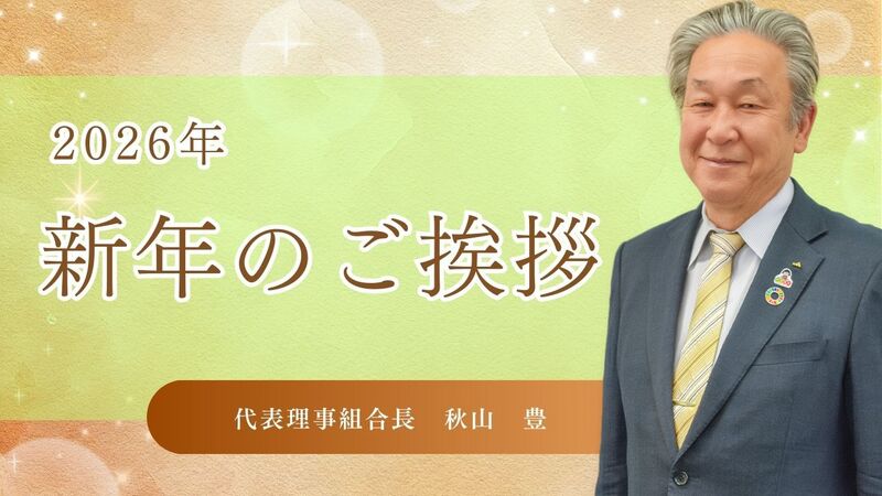 秋山豊組合長による新年の挨拶動画をYouTube上にて公開いたしました。 新年を迎えるにあたり、地域農業への思いや、組合員の皆さまへの感謝の気持ちをお伝えしています。 ぜひご覧ください。