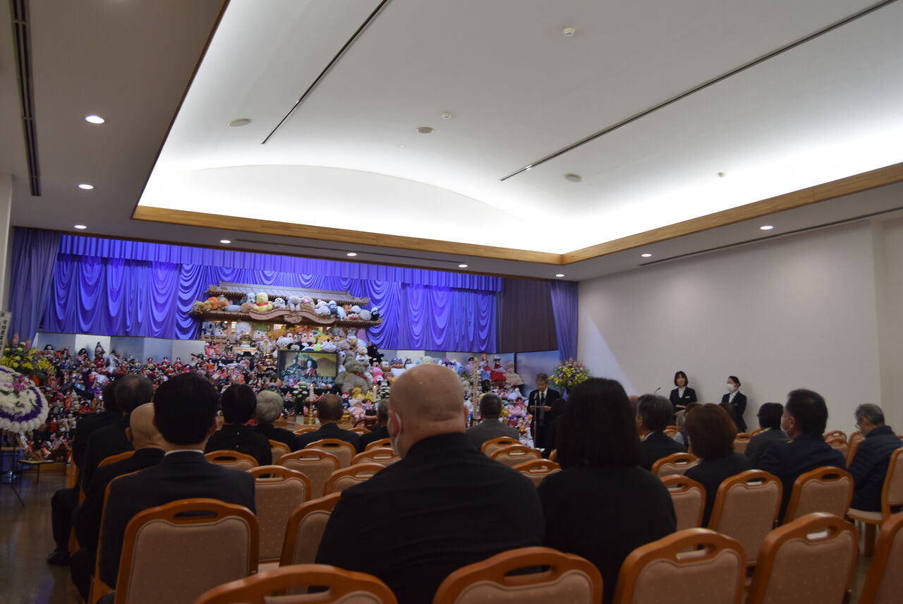 令和7年11月24日に開催いたしました「人形供養祭」は多くの皆様のご協力のもと、滞りなく執り行うことができました。お預かりしたお人形一体一体に感謝を込め、心を込めてご供養させていただきました。ご来場いただきました皆様、ならびに関係者の皆様に厚く御礼申し上げます。【ご報告】 ご依頼いただいたお客様:117組 お預かりしたお人形:約 1,000体 本当にありがとうございました。 セレモニーホール諏訪